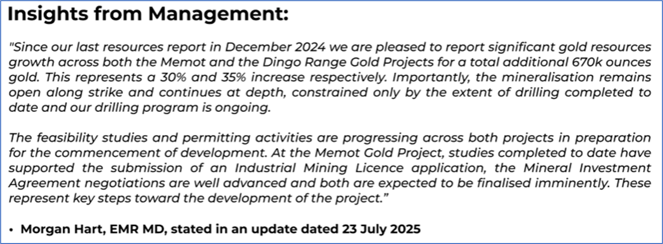 1.1: Company Overview: Emerald Resources NL (ASX: EMR) is an international gold exploration, development, and mining company. EMR operates the Okvau Gold Mine in Cambodia and is focused on unlocking potential at the Dingo Range Gold Project in Western Australia. Committed to sustainable practices, Emerald is listed on the Australian Securities Exchange. Kalkine’s Gold Report covers the Investment Highlights, Management Insights, Key Financial Metrics, Risks, Technical Analysis along with the Valuation, Target Price, and Recommendation on the stock.