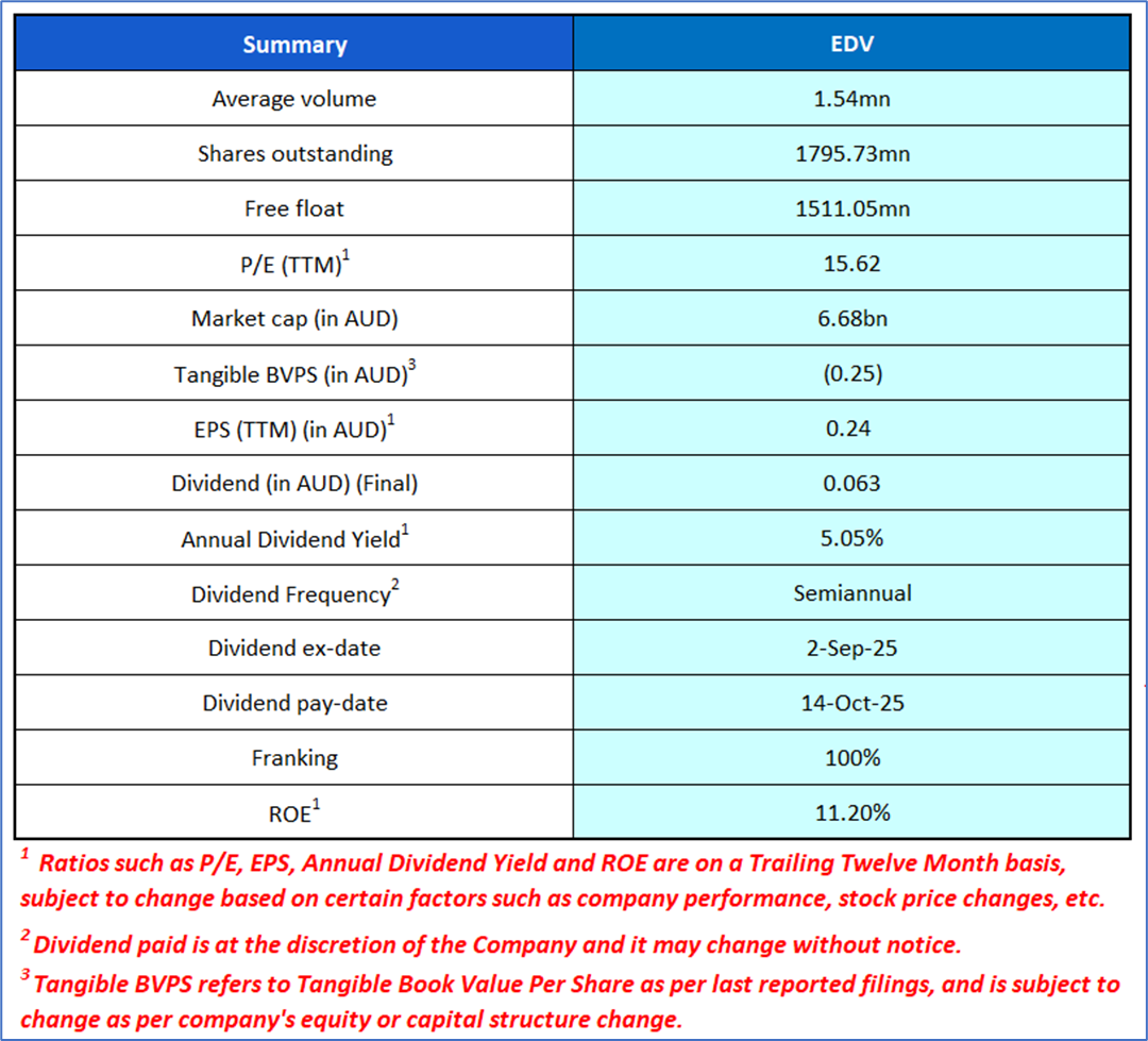 Section 1.1: Endeavour Group Limited (ASX: EDV) is Australia’s retail drinks and hospitality business. It operates well-known brands including Dan Murphy’s, BWS, ALH Hotels, and Pinnacle Drinks, supported by over 30,000 employees across Australia and New Zealand. Kalkine’s Low Carbon Research Report covers the Investment Highlights, Low Carbon Emission Initiatives, Key Financial Metrics, Risks, and Technical Analysis along with the Valuation, Target Price, and Recommendation on the stock.