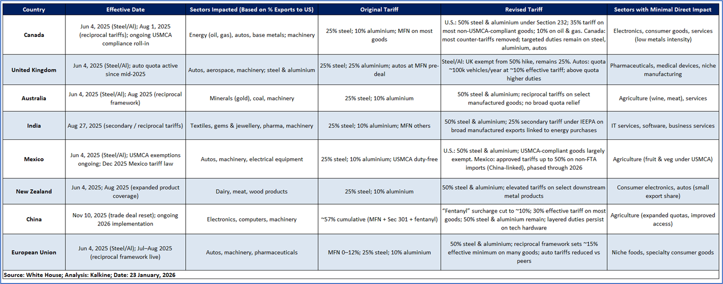Kalkine’s Global Tariff Report provides fully independent analysis and data-driven analysis of major global sectors affected by tariff changes, evaluating the implications these shifts may have on equity valuations across those industries. The report concentrates on trade-sensitive sectors that typically experience heightened investor scrutiny during periods of tariff uncertainty. It also identifies defensive and countercyclical segments that demonstrate relative resilience or may even outperform, amid disruptions to global trade flows.