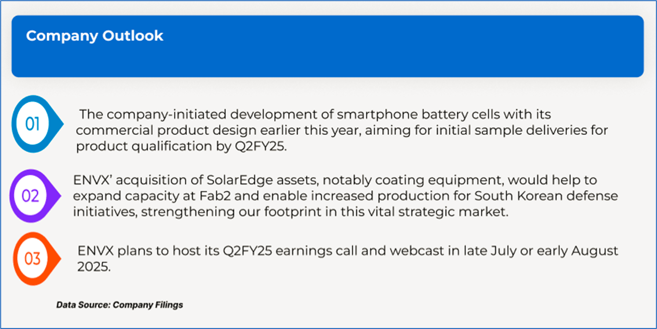 1.4 Key Metrics: ENVX's cost of sales decreased by 32% YoY to USD 4.84mn in Q1FY25 vs USD 7.07mn in Q1FY24. Below are captured other metrics: