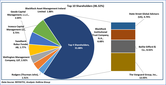 1.3 Top 10 Shareholders: The top 10 shareholders have been highlighted in the chart below, which together form ~46.32% of the total shareholding.