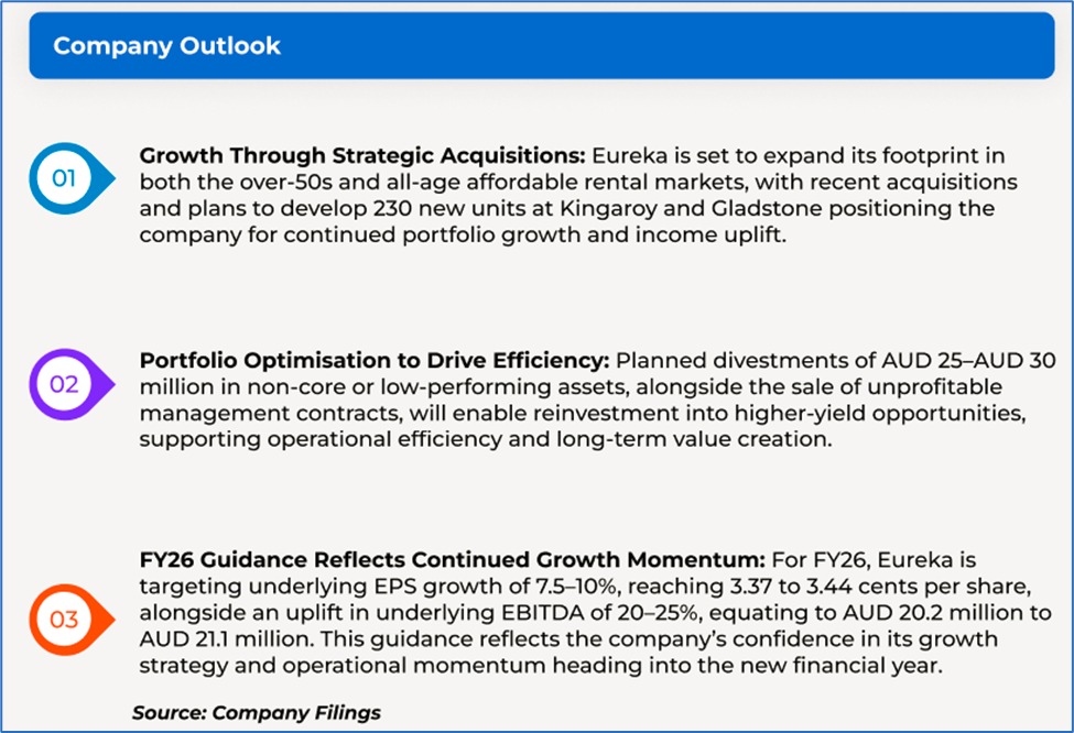 Company Overview: Eureka Group Holdings Limited (ASX: EGH) provides independent rental accommodation to independent retirees who are supported by the Australian Government pension. The company was listed on ASX on 01 July 2004. Kalkine’s Real Estate Report covers the Investment Highlights, Key Financial Metrics, Risks, Technical Analysis along with the Valuation, Target Price, and Recommendation on the stock.