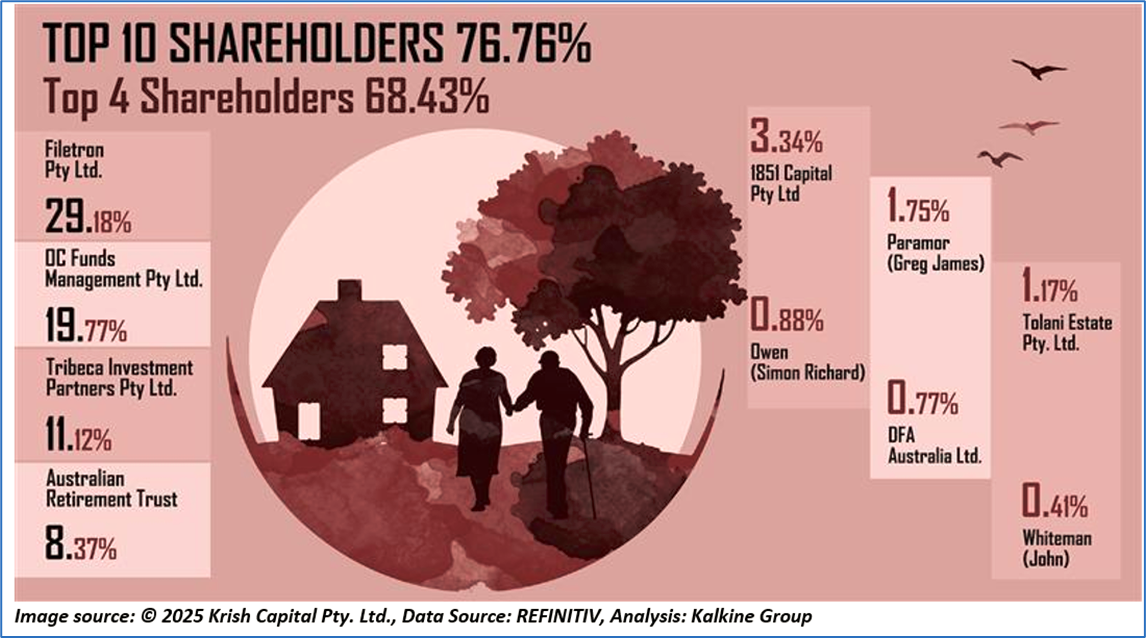 The top 10 shareholders together form ~76.76% of the total shareholding. Filetron Pty Ltd. and OC Funds Management Pty Ltd. are holding maximum stakes in the company at ~29.18% and ~19.77%, respectively.