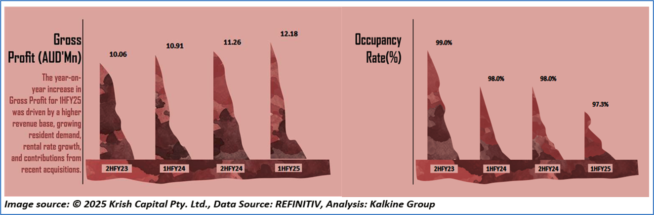 Return on Equity stood at 3.3% in 1HFY25, as compared to the Industry Median figure of 1.1%. Below is captured other metrics showing the trend of Occupancy Rate and Gross Profit: