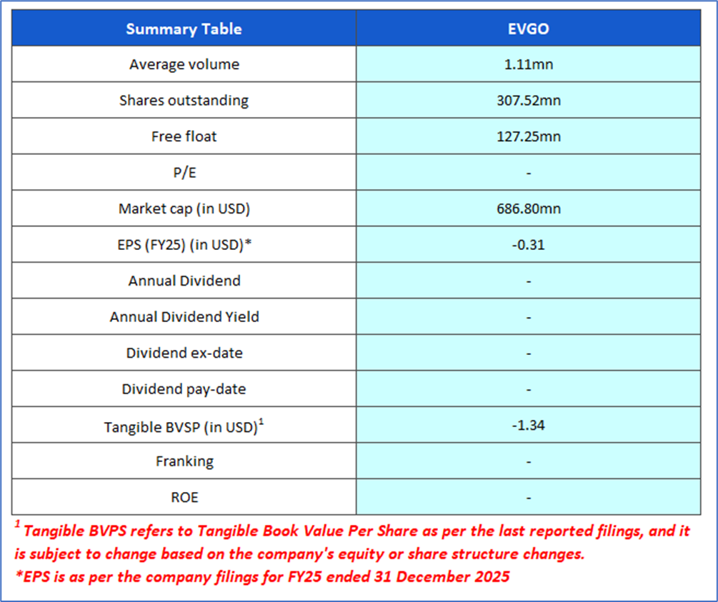 Company Overview: EVgo Inc. (NASDAQ: EVGO) operates a public fast-charging network for electric vehicles in the United States. The company has more than 1,200 fast-charging stations across 47 states and deploys charging infrastructure through partnerships with businesses such as retailers, grocery stores, restaurants, shopping centers, gas stations, rideshare operators, and autonomous vehicle companies. Kalkine’s Global Fully Charged Report covers the Investment Highlights, Management Insights, Key Financial Metrics, Risks, and Technical Analysis along with the Valuation, Target Price, and Recommendation on the stock.