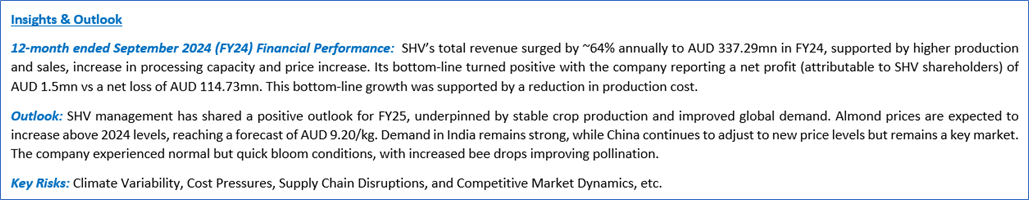 Company Overview: HMC Capital Limited (ASX: HMC) is an ASX-listed diversified alternative asset manager specialising in high conviction and scalable real asset strategies on behalf of individuals, large institutions, and super funds. Select Harvests Limited (ASX: SHV) is an ASX listed producer of almond products for retail and industrial markets. Kalkine’s Sector Report covers the Investment Summary, Sector Overview & Supporting Catalysts, Data Insights & Analysis, Financial Metrics, Financial Commentary, Risks, Outlook, Technical Analysis along with the Valuation, Target Price, and Recommendation on selected stocks.