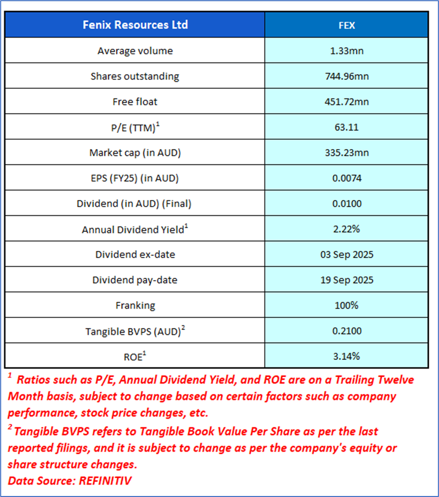 1.1 Company Overview: Fenix Resources (ASX: FEX) is a is a fully integrated iron ore mining, logistics, and port services company operating in the Mid-West region of Western Australia. The company currently produces over 4 million tonnes per annum (Mtpa) of high-quality iron ore and has a clearly defined growth pathway to long-term production of 10Mtpa. Fenix owns and operates three iron ore mines—Iron Ridge, Shine, and Beebyn-W11—which supply lump and fines products for export through the Port of Geraldton. Kalkine’s Resources Report covers the Investment Highlights, Key Financial Metrics, Risks, Technical Analysis along with the Valuation, Target Price, and Recommendation on the stock.