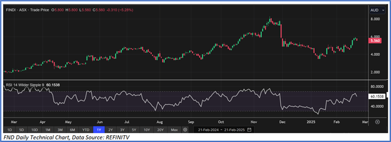 The stock has witnessed a dip of ~20.60% in the last three months, and over the past nine months, it increased by ~51.03%. The stock has a 52-week low and 52-week high of AUD 1.840 and AUD 8.300, respectively, and is currently trading Above the 52-week high-low average. FND was last covered in a report dated ‘04 December 2024’.