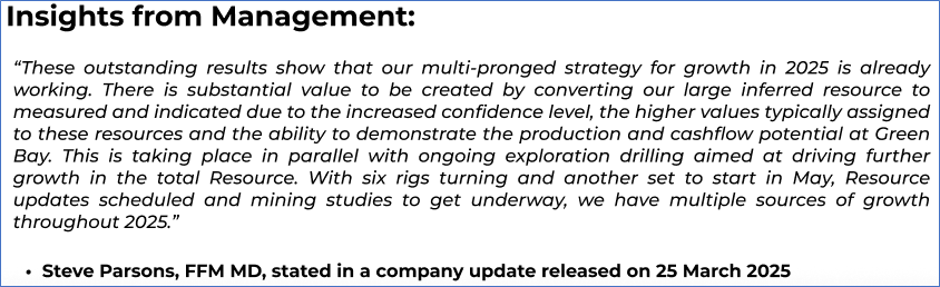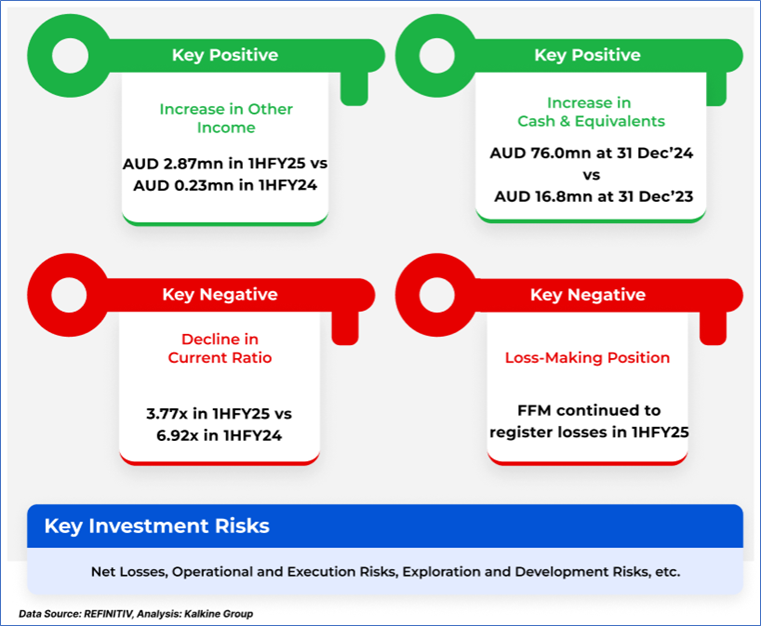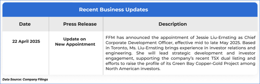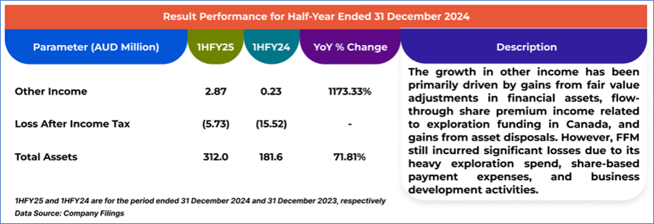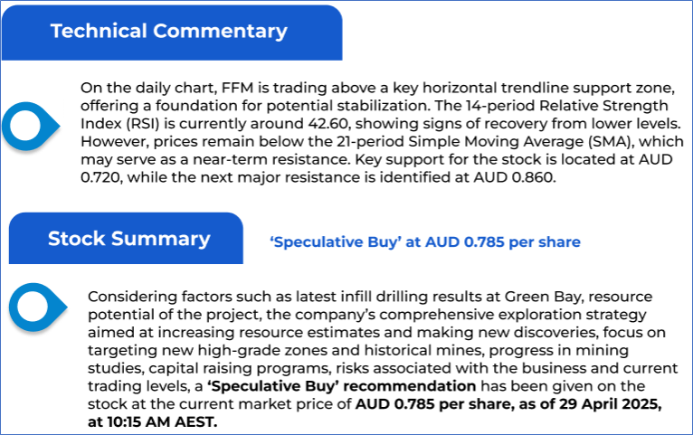 The stock price has gone down by ~19.07% in the last one month and over the last six months, stock prices declined by ~31.14%. The stock has a 52-week low and 52-week high of AUD 0.655 and AUD 1.380, respectively, and is currently trading near the 52-week-low level. FFM was last covered in a report dated ‘9 April 2025’.