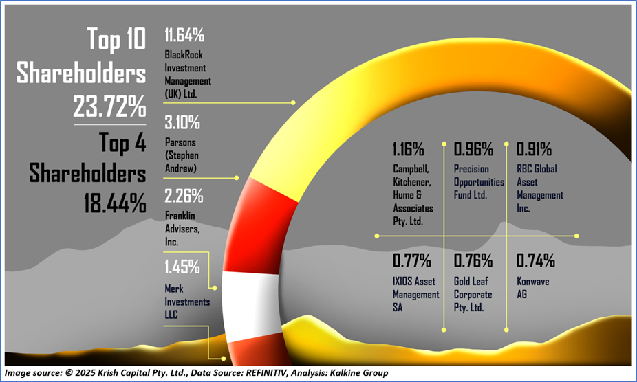 1.3: Top 10 Shareholders: The top 10 shareholders together form ~23.72% of the total shareholding. BlackRock Investment Management (UK) Ltd. and Parsons (Stephen Andrew) are holding maximum stakes in the company at ~11.64% and ~3.10%, respectively.