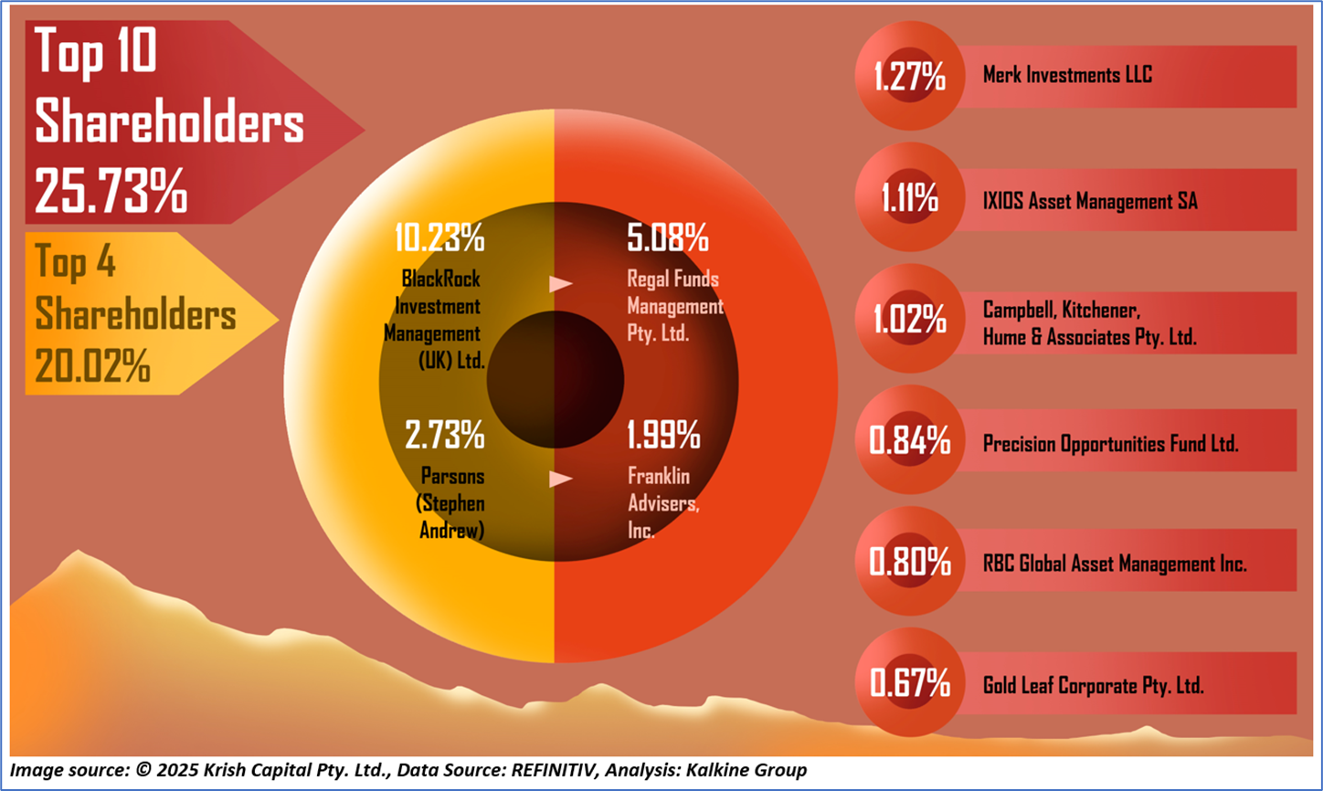 1.3: Top 10 Shareholders: The top 10 shareholders together form ~25.73% of the total shareholding. BlackRock Investment Management (UK) Ltd. and Regal Funds Management Pty. Ltd. are holding maximum stakes in the company at ~10.23% and ~5.08%, respectively.