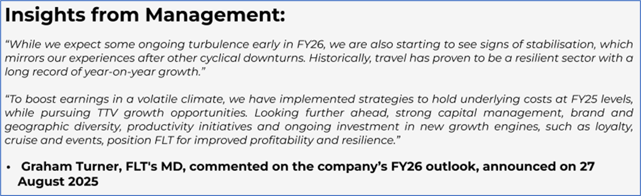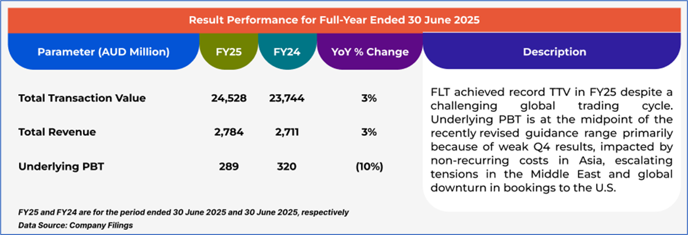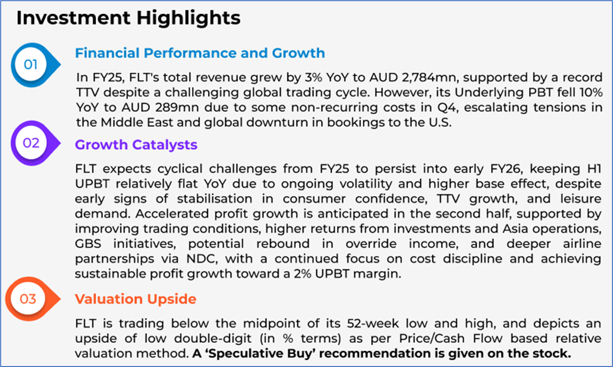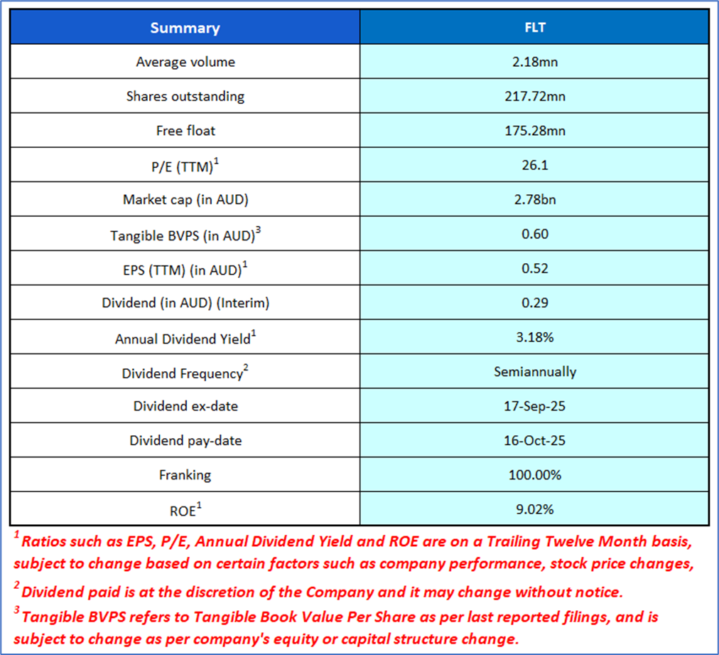 The stock has gained by ~2.61% in the last one month, whereas over the last six months, the stock has corrected by ~22.21%. The stock has a 52-week low and 52-week high of AUD 11.640 and AUD 22.590, respectively, and is currently trading below the mid-point of its 52-week low and high. FLT was last covered in a report dated ‘5 August 2025’.