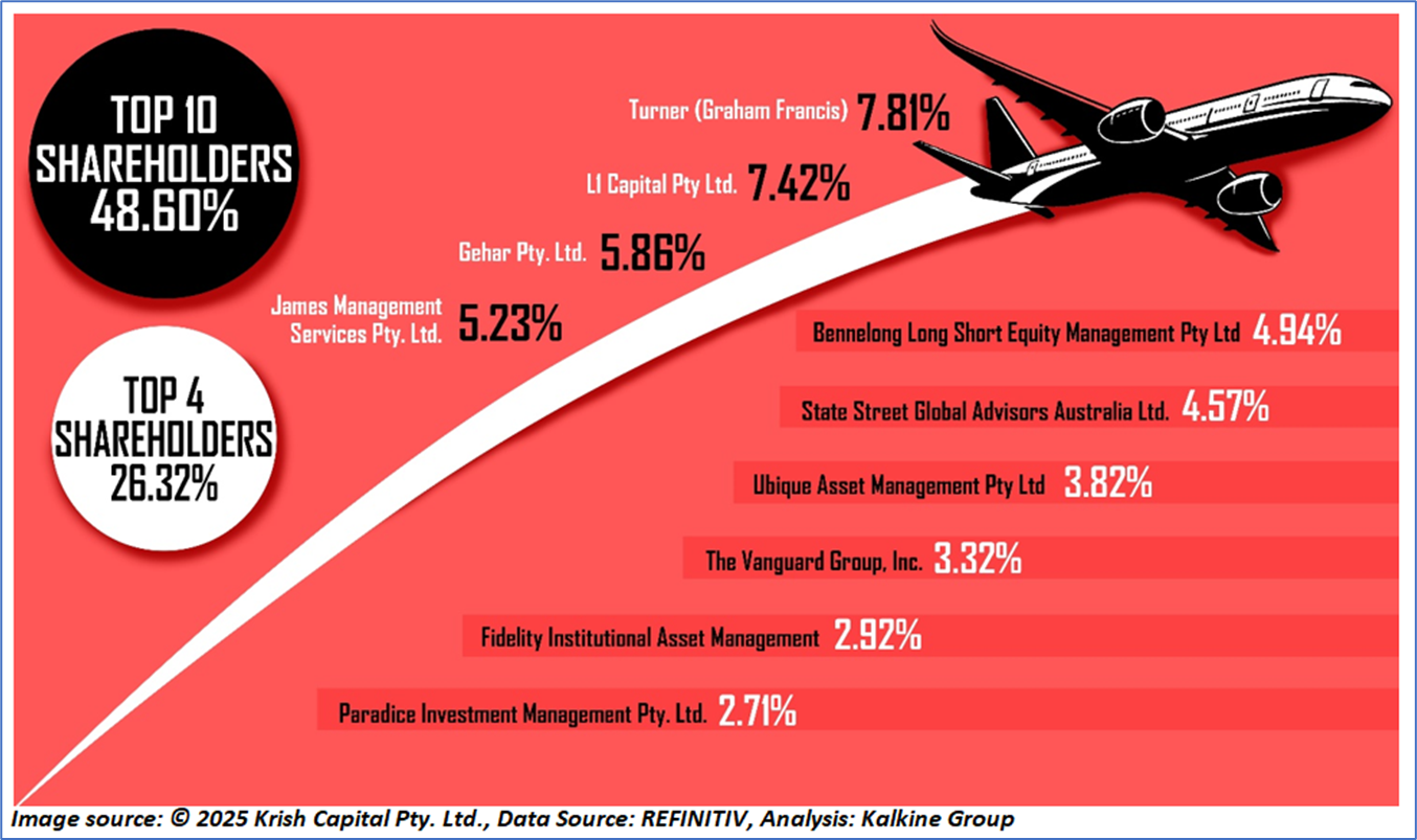 The top 10 shareholders together form ~48.60% of the total shareholding. Turner (Graham Francis) and LI Capital Pty Ltd. hold maximum stakes in the company at ~7.81% and 7.42%, respectively.