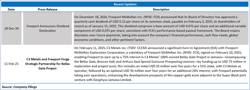 Freeport-McMoRan Inc. (NYSE: FCX) is an international mining company. The Company operates geographically diverse assets with significant proven and probable reserves of copper, gold and molybdenum. Its portfolio of assets includes the Grasberg minerals district in Indonesia, which is a copper and gold deposits, and significant mining operations in North America and South America, including the Morenci minerals district in Arizona and the Cerro Verde operation in Peru.