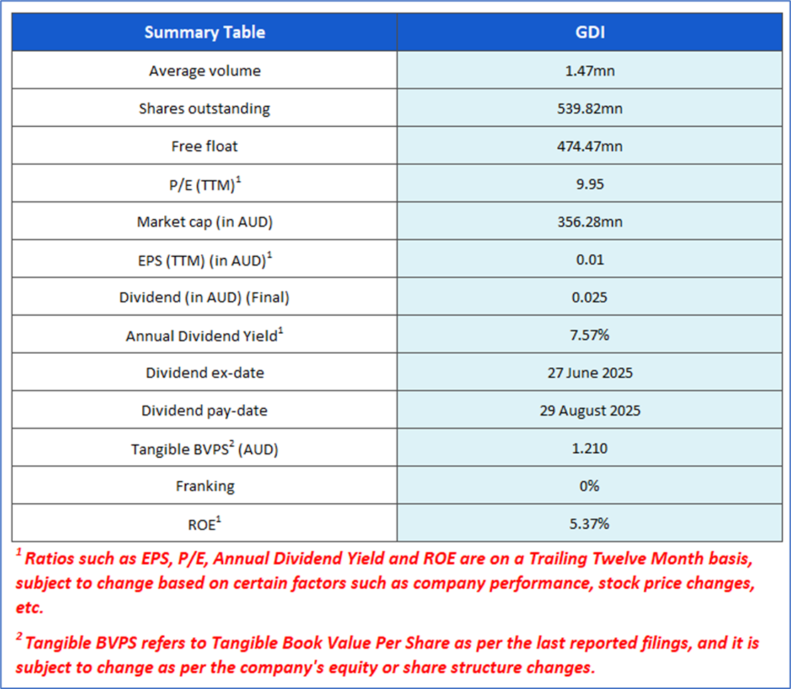 Company Overview: GDI Property Group Limited (ASX: GDI) is a fully integrated, internally managed property and funds management group, specialising in ownership, management, refurbishment, leasing, and syndication of properties. Structured as a stapled entity—GDI Property Group Limited and GDI Property Trust—GDI operates through wholly owned subsidiaries and offers high-performance property management services. With a track record in creating value through strategic property selection and active asset management, GDI provides both listed and wholesale investors with income-focused and value-add property trusts. Kalkine’s Real Estate Report covers the Investment Highlights, Management Insights, Key Financial Metrics, Risks, Technical Analysis along with the Valuation, Target Price, and Recommendation on the stock.