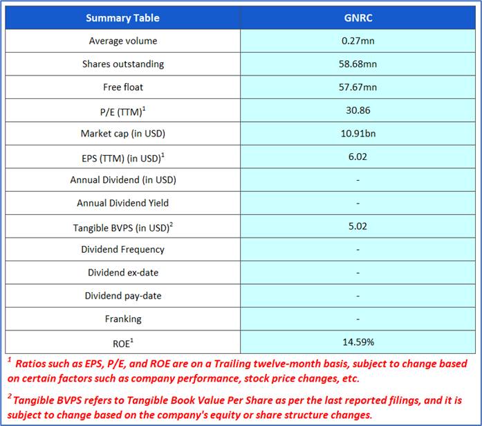 Company Overview: Generac Holdings Inc. (NYSE: GNRC) is a global designer and manufacturer of energy technology solutions. The company specializes in power generation equipment, including automatic, stationary standby, and portable generators, serving residential, commercial, industrial, and telecommunications markets worldwide. Kalkine’s Global Fully Charged Report covers the Investment Highlights, Management Insights, Key Financial Metrics, Risks, and Technical Analysis along with the Valuation, Target Price, and Recommendation on the stock.