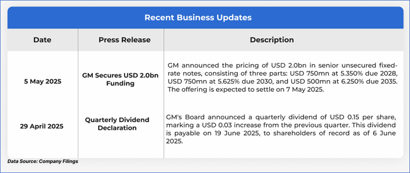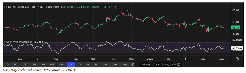 The stock has declined by ~5.26% in the last three months, whereas over the last six months, the stock has decreased by ~12.39%. The stock has a 52-week low and 52-week high of USD 38.96 and USD 61.24, respectively, and is currently trading below the average of 52-week high and low. GM was last covered in a report dated ‘05 February 2024’.