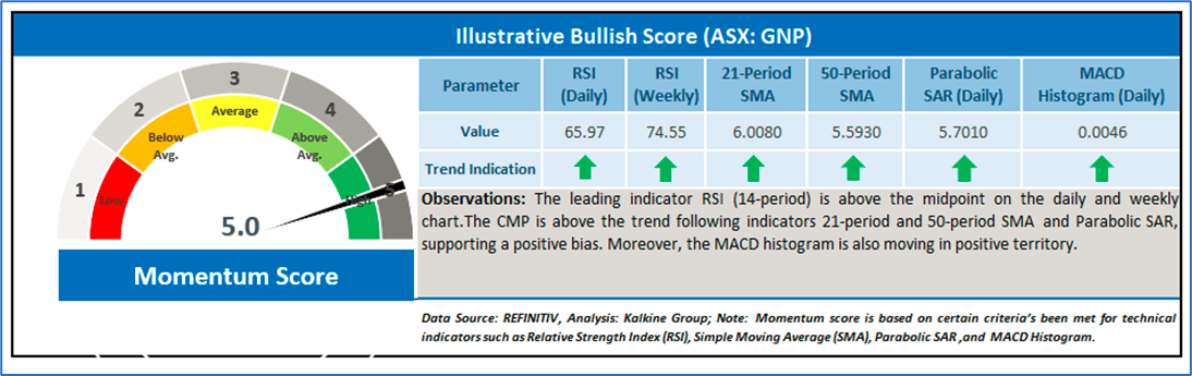 Report covers the Price Action, Technical Indicators Analysis along with the Target Levels, Stop Loss, and Recommendation on this stock. Noted below is the illustrative momentum score based on technical indicators for the stock: