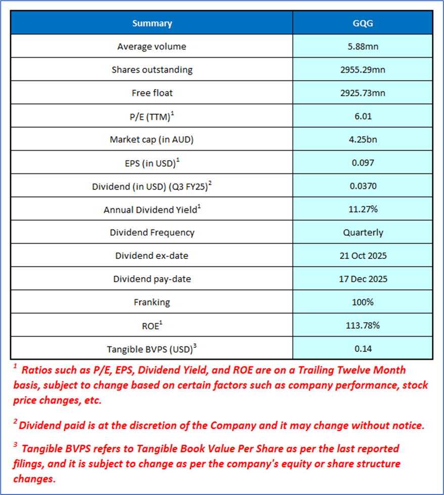 1.1 Company Overview: GQG Partners Inc (ASX: GQG) is a global boutique asset management firm specializing in the active management of equity portfolios for a diverse client base, including pension funds, sovereign wealth funds, wealth managers, and institutional investors. Kalkine’s Investor Report covers the Investment Highlights, Management Insights, Key Financial Metrics, Risks, Technical Analysis along with the Valuation, Target Price, and Recommendation on the stock.