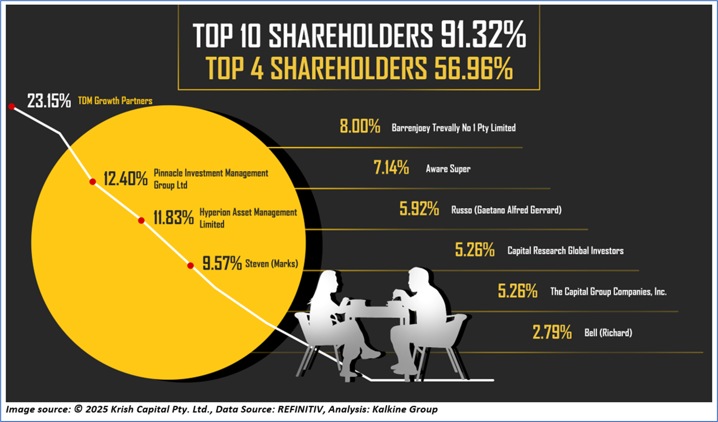 1.3: Top 10 Shareholders: The top 10 shareholders together form ~91.32% of the total shareholding. TDM Growth Partners and Pinnacle Investment Management Group Ltd are holding maximum stakes in the company at ~23.15% and ~12.40%, respectively.