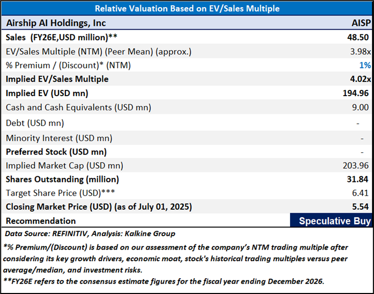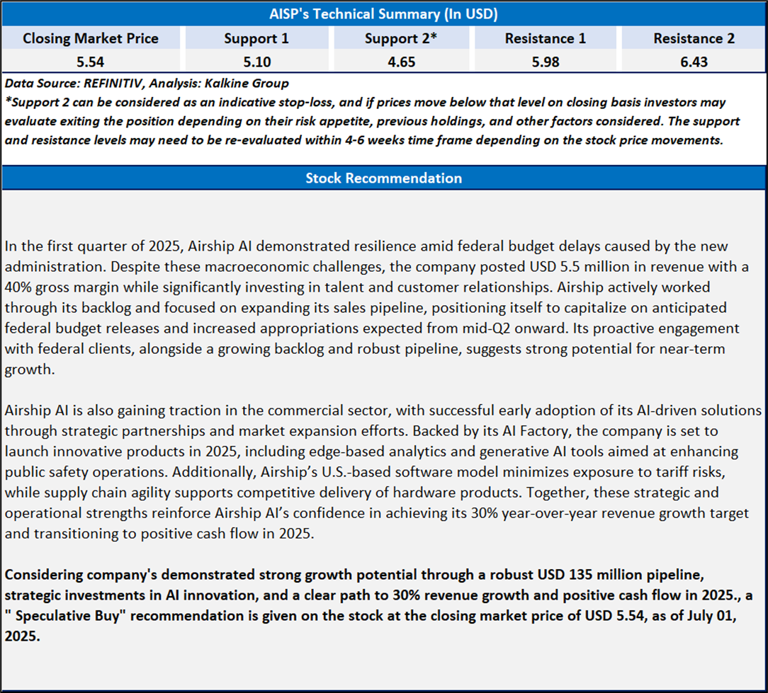 Section 2: Airship AI Holdings, Inc (NASDAQ: AISP) (“Speculative Buy” at the closing market price of USD 5.54, as of July 01, 2025