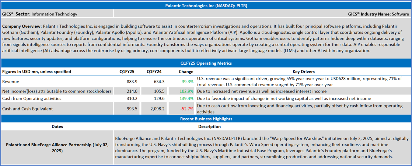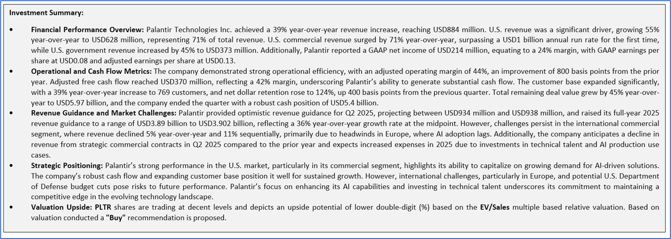 Section 2: Palantir Technologies Inc (NASDAQ: PLTR) (“Buy” at the closing market price of USD 130.68, as of July 01, 2025)