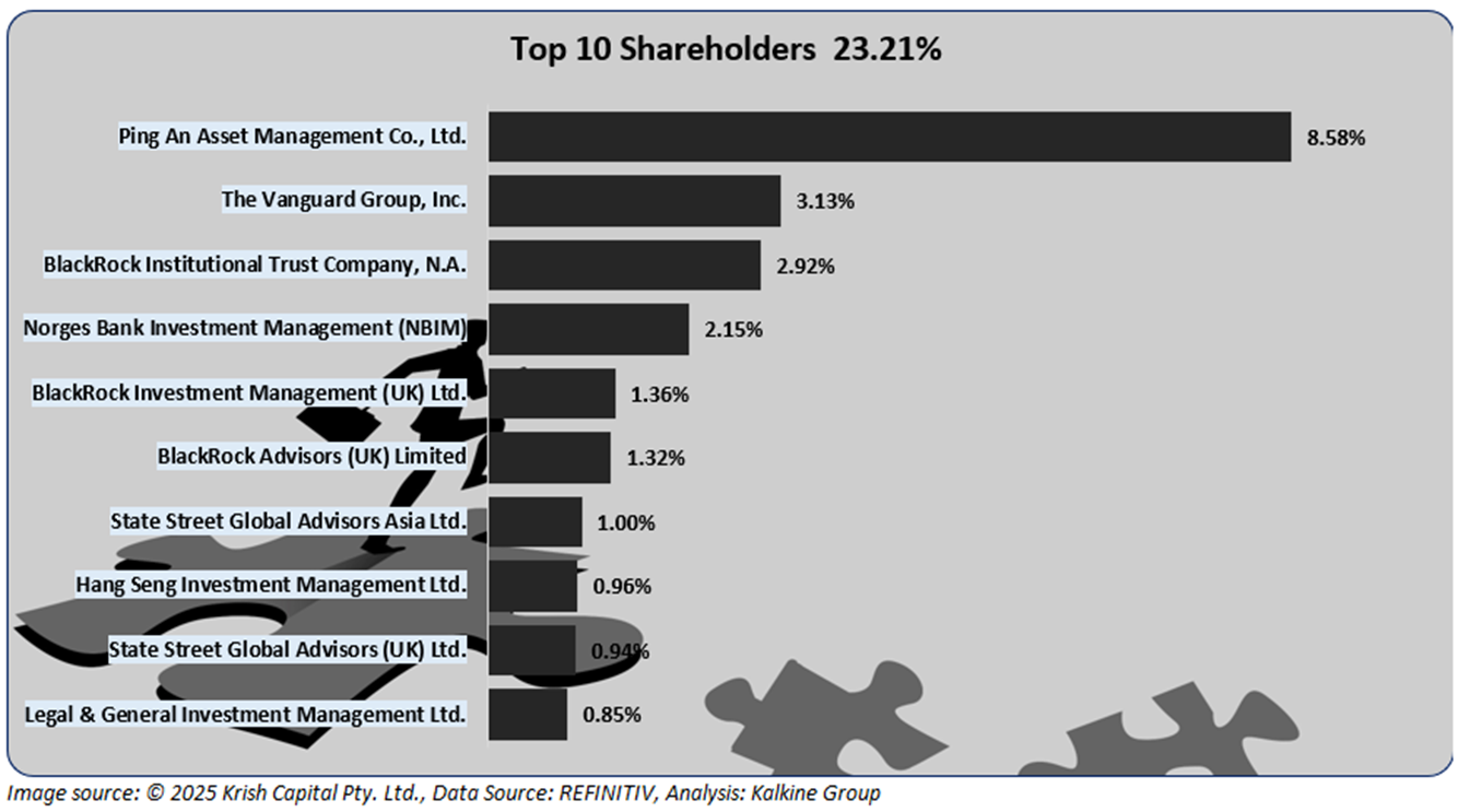 The top 10 shareholders together form ~23.21% of the total shareholding. Ping An Asset Management Co., Ltd. and The Vanguard Group, Inc. hold a maximum stake in the company at ~8.58% and ~3.13%, respectively.