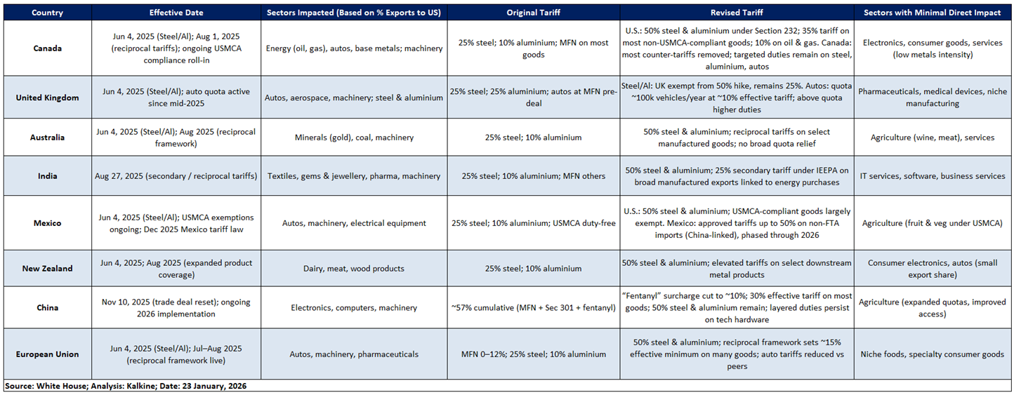 Kalkine's Global Tariff Report offers independent, data-driven analysis of key global sectors impacted by tariff adjustments. It evaluates the potential implications these changes may have for equity valuations within those industries. The report prioritizes trade-sensitive sectors, which typically face increased investor scrutiny during periods of tariff uncertainty, while also identifying defensive and countercyclical segments that demonstrate resilience or potential for outperformance amidst global trade disruptions.