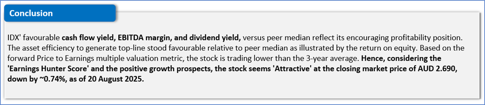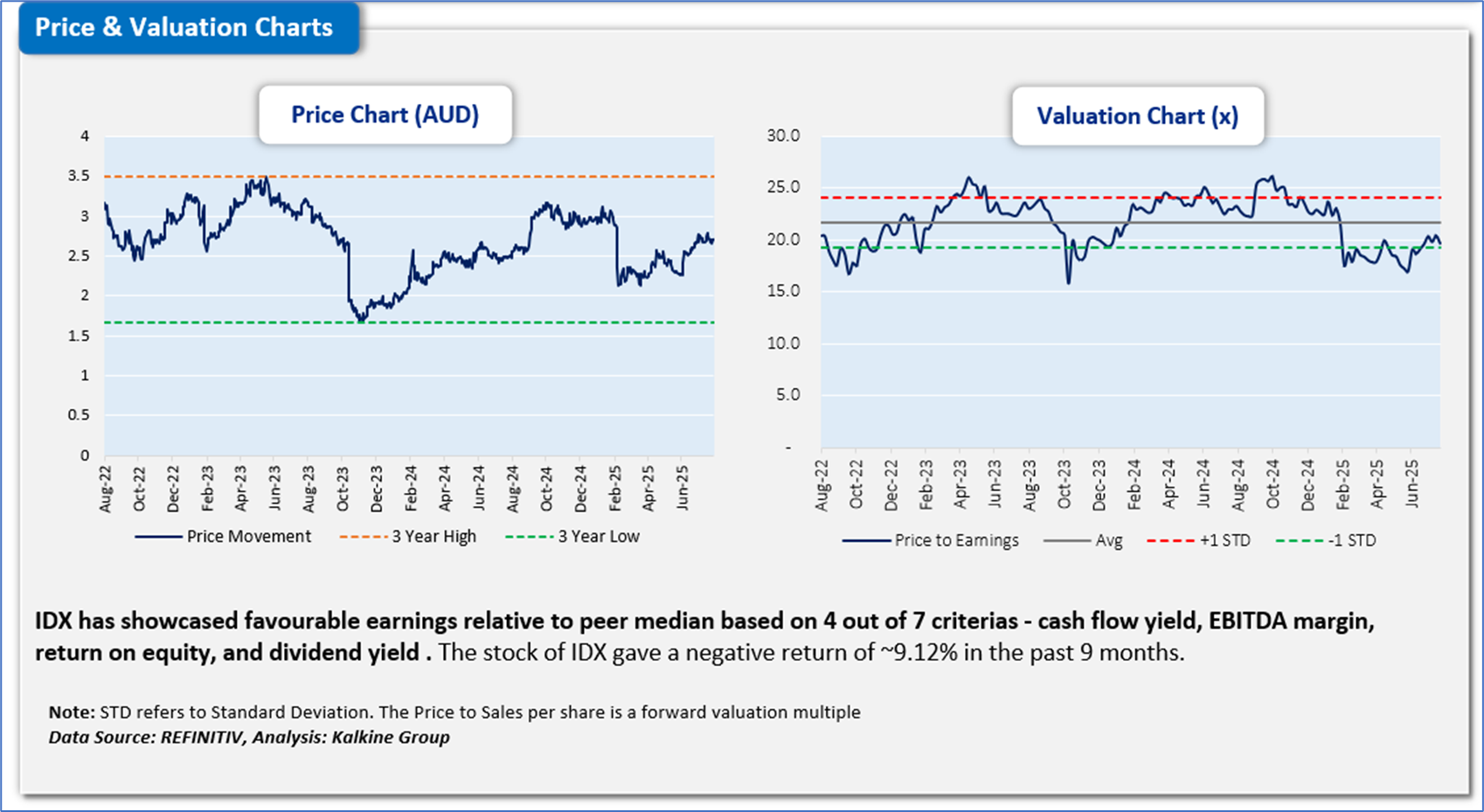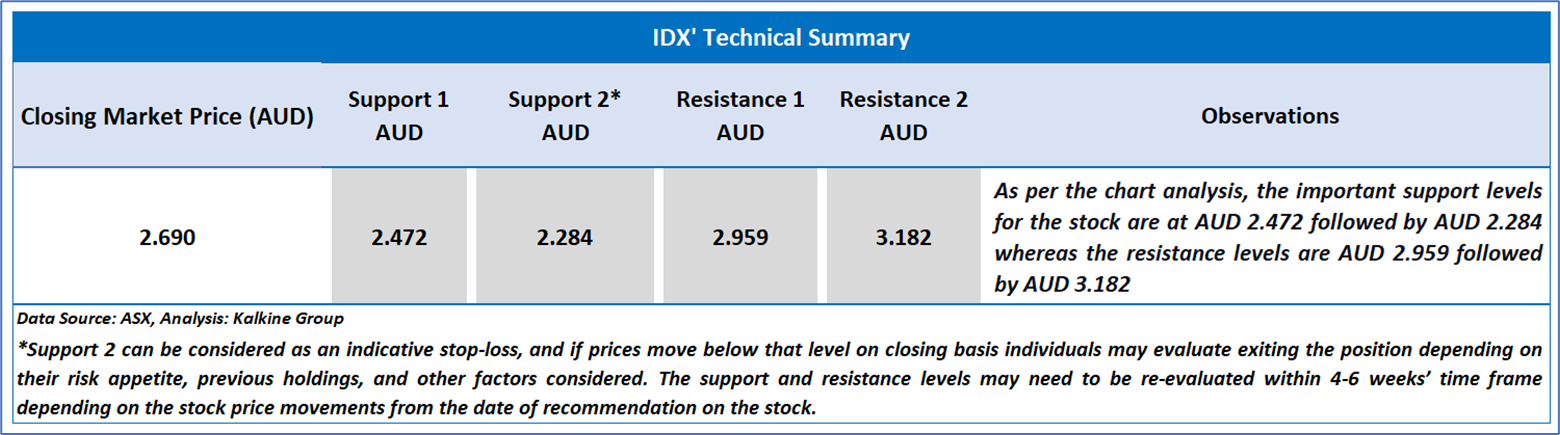 The stock has declined by ~10.03% in the last six months, and over the past nine months, it has decreased by ~9.12%. The stock has a 52-week low and 52-week high of AUD 1.910 and AUD 3.200, respectively, and is currently trading above the 52-week high-low average. IDX was last covered in a report dated ’11 June 2025’.