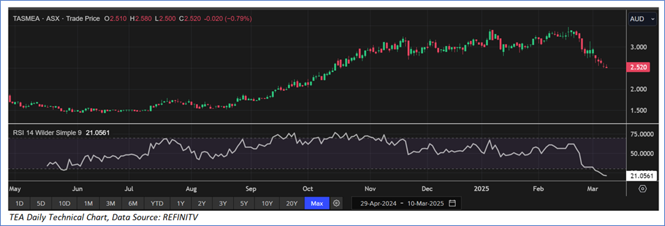 2) Tasmea Limited (ASX: TEA) (Recommendation: ‘Speculative Buy’ at AUD 2.520, Potential Upside: Low Double-Digit) (M-cap: AUD 584.05mn)