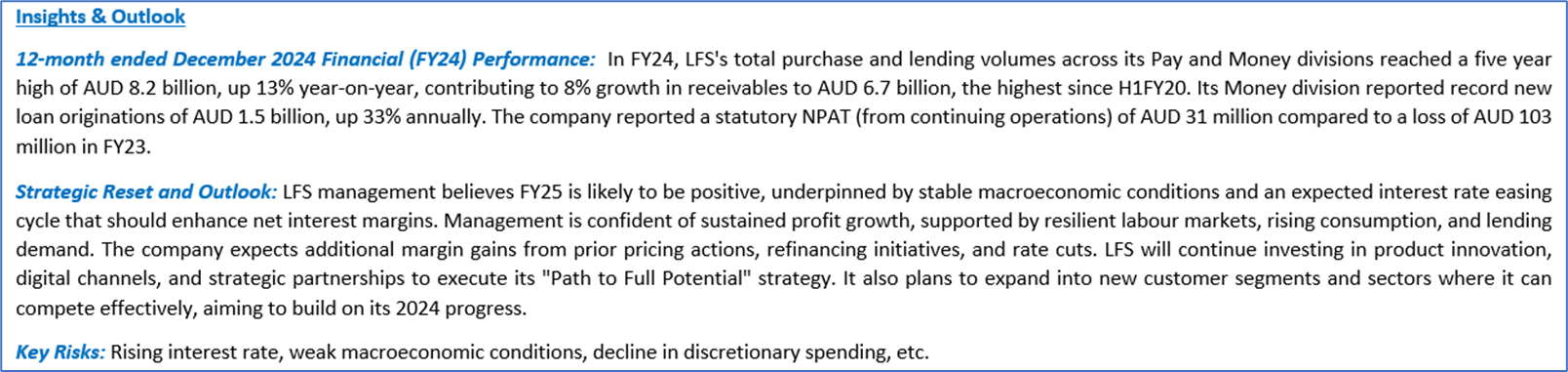 LFS is engaged in the sales finance and consumer lending business. Its segments include Australia and New Zealand Pay (A&NZ Pay), Australia and New Zealand Money (A&NZ Money), and Other.