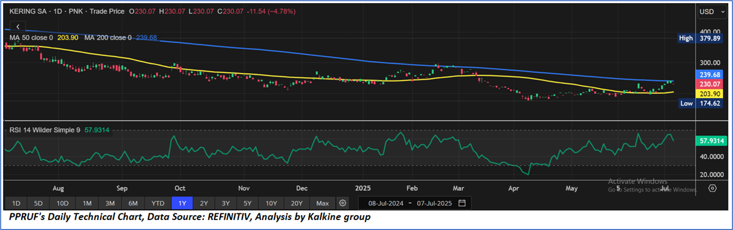 Kalkine’s Global Tariff Report covers the Investment Highlights, Key Financial Metrics, Risks, Technical Analysis along with the Valuation, Target Price, and Recommendation on the Kering SA (OTC: PPRUF).