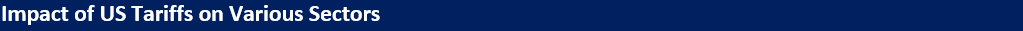 As illustrated in the table below, several key sectors in different countries are directly impacted by the recent tariff announcement from President Trump.