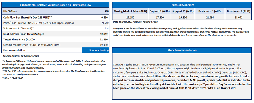 Section 2.0: Life360 Inc. (‘Speculative Buy’ at AUD 19.18, closing market price per share as on 16 April 2025)