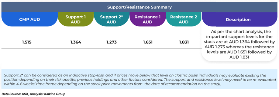 Note 3: Investment decisions should be made depending on an individual's appetite for upside potential, risks, holding duration, and any previous holdings. An 'Exit' from the stock can be considered if the Target Price mentioned as per the Valuation and or the technical levels provided has been achieved and is subject to the factors discussed above.