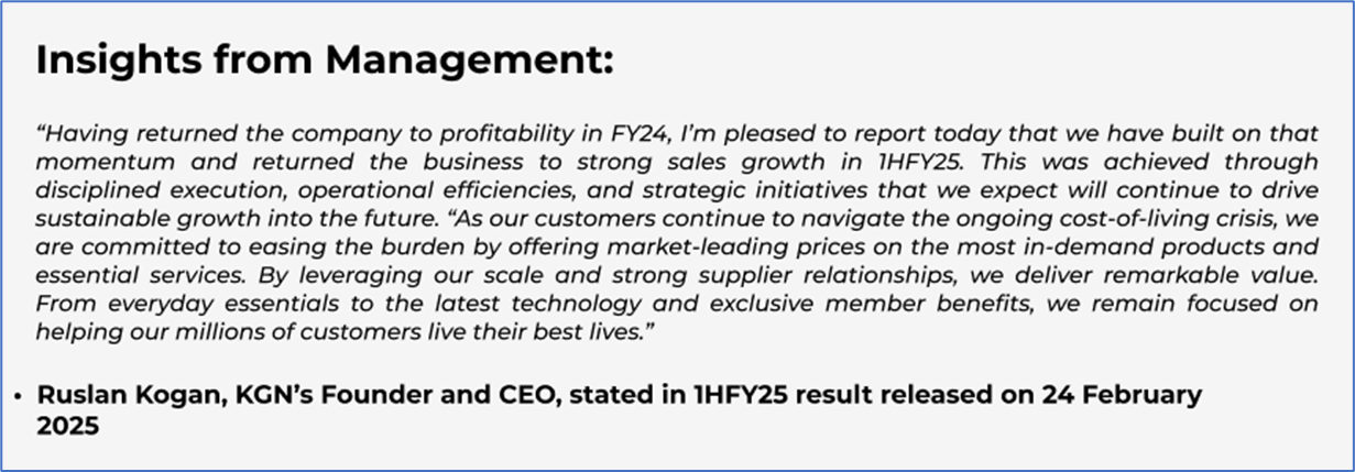 1.4 Key Metrics: KGN’s EBITDA margin increased to 8.9% in 1HFY25 compared to 7.7% in 1HFY24. Below is captured other metrics: