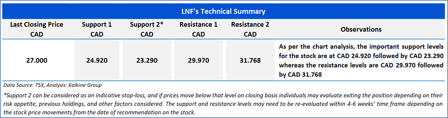 The stock has witnessed a downside of ~3.32% and an upside of ~17.39% over the last 1 week and 3 months respectively. Moreover, it is trading above the average 52-week high price of CAD 30.64 and 52-week low price of CAD 20.51, providing an opportunity to ride the trend.