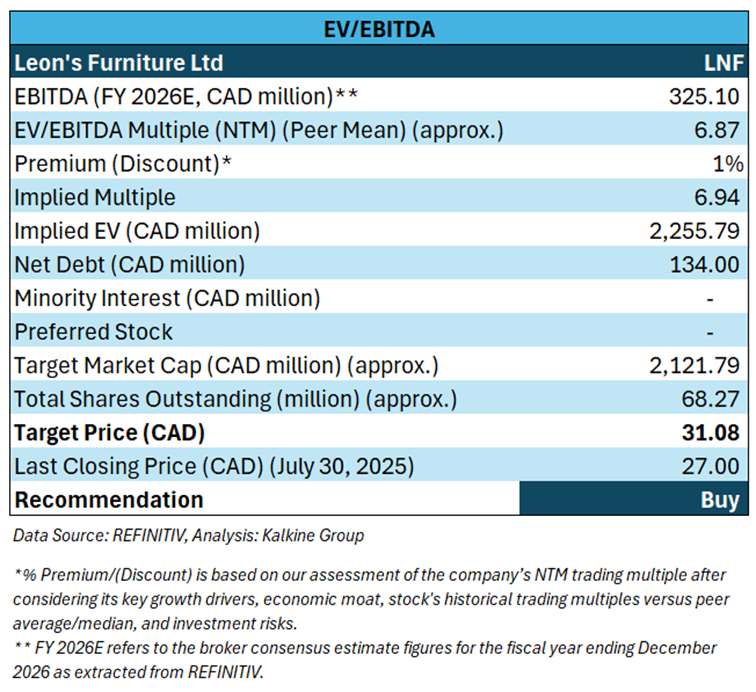 Valuation Methodology: EV to EBITDA Based Relative Valuation (Illustrative)