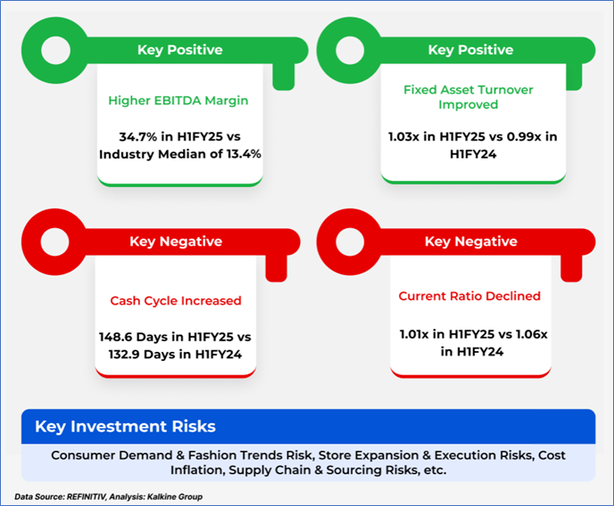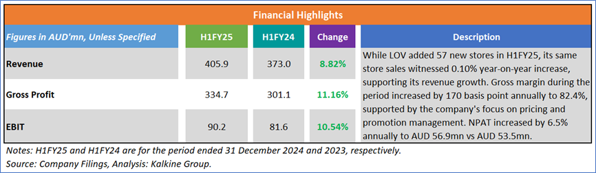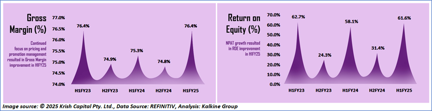 1.4 Key Metrics: In H1FY25, LOV’s net margin was 14% vs industry median of 6.6%. Below is captured other metrics: