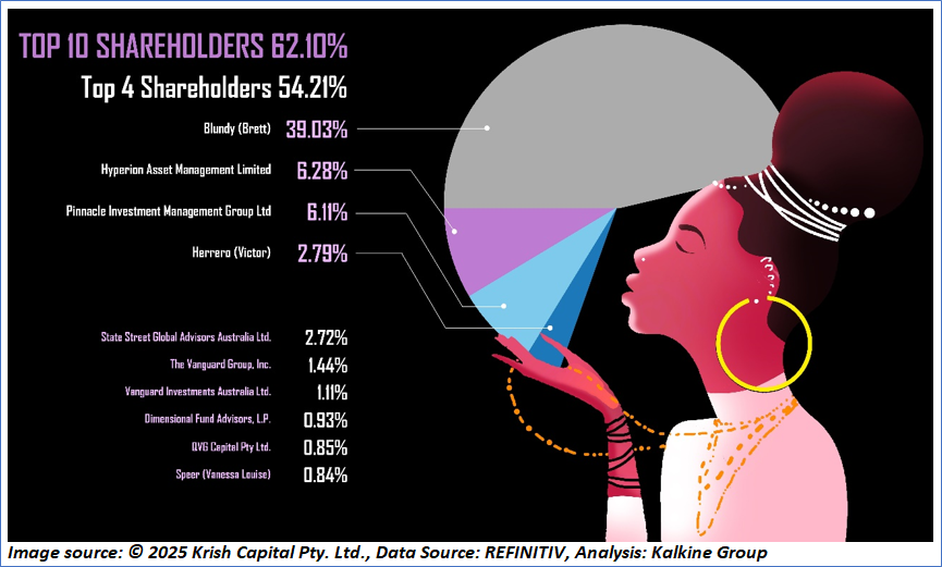 The top 10 shareholders together form ~62.10% of the total shareholding. Blundy (Brett) and Hyperion Asset Management Limited hold maximum stakes in the company at ~39.03% and 6.28%, respectively.