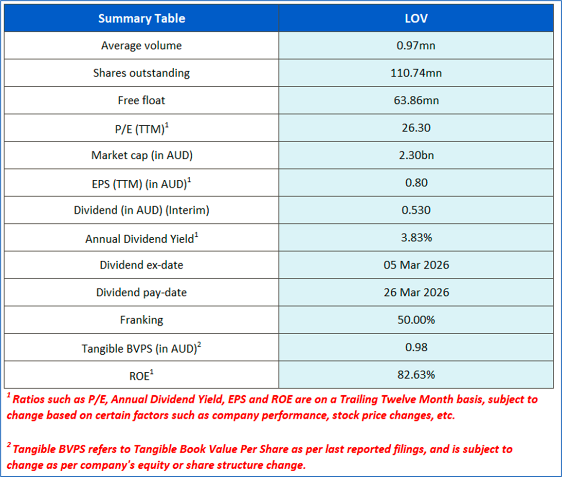 1.1: Company Overview: Lovisa Holdings Limited (ASX: LOV) is an Australia-based specialist fast fashion jewelry retailer. The company and its subsidiaries are primarily involved in the retail sale of fashion jewelry and accessories. The company is also focused on designing, developing, sourcing, and merchandising all its branded products. Kalkine’s Investor Report covers the Investment Highlights, Management Insights, Key Financial Metrics, Risks, Technical Analysis along with the Valuation, Target Price, and Recommendation on the stock.