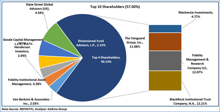1.3 Top 10 Shareholders: The top 10 shareholders have been highlighted in the chart below, which together form ~57.0% of the total shareholding.