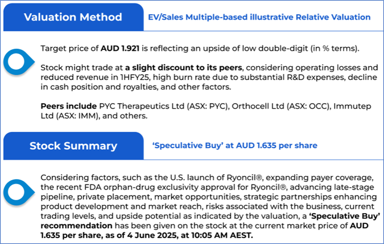 1.1: Company Overview: Global company Mesoblast Limited (ASX: MSB) is engaged in developing allogeneic (off-the-shelf) cellular medicines for the treatment of severe and life-threatening inflammatory conditions. Using its proprietary mesenchymal lineage cell therapy technology platform, the company has established a broad portfolio of late-stage product candidates. The company is also listed on NASDAQ (MESO). Kalkine’s Healthcare Report covers the Investment Highlights, Management Insights, Key Financial Metrics, Risks, Technical Analysis along with the Valuation, Target Price, and Recommendation on the stock.