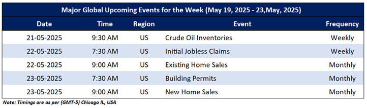 Market events occur on a day-to-day basis depending on the frequency of the data and generally include an update on employment, inflation, GDP, WASDE report, consumer sentiments, etc. Noted below are the upcoming week's major global economic events that could impact commodities’ prices: