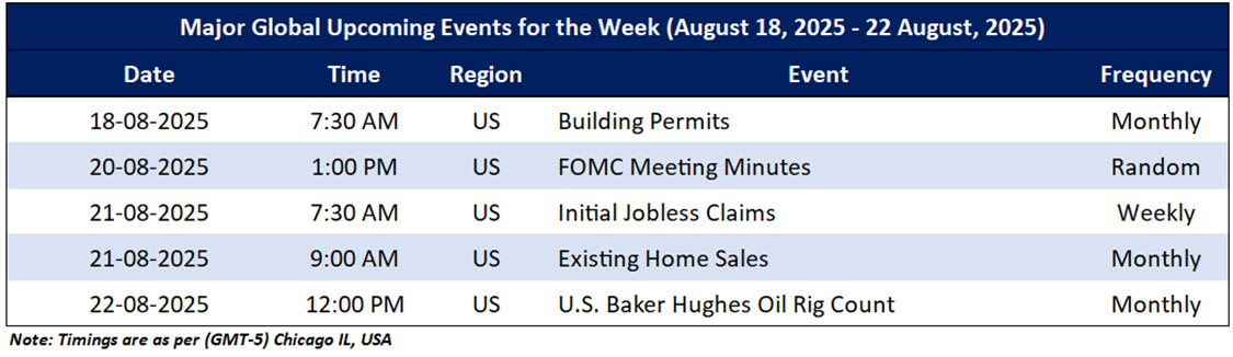 Market events occur on a day-to-day basis depending on the frequency of the data and generally include an update on employment, inflation, GDP, WASDE report, consumer sentiments, etc. Noted below are the upcoming week's major global economic events that could impact commodities’ prices: