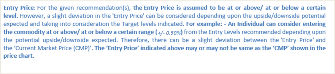 Note 2: Individuals can consider exiting from the commodity if the Target Price mentioned as per the Technical Analysis has been achieved and subject to the factors discussed above.