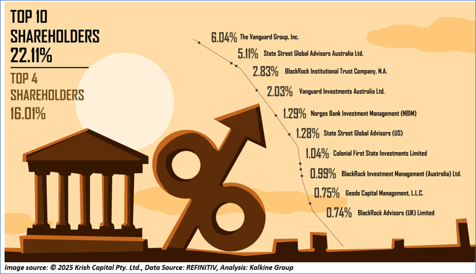 1.3: Top 10 Shareholders: The top 10 shareholders together form ~22.11% of the total shareholding. The Vanguard Group, Inc. and State Street Global Advisors Australia Ltd. are holding maximum stakes in the company at ~6.04% and ~5.11%, respectively.
