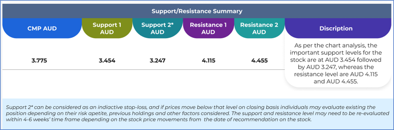 Note 3: Investment decisions should be made depending on an individual's appetite for upside potential, risks, holding duration, and any previous holdings. An 'Exit' from the stock can be considered if the Target Price mentioned as per the Valuation and or the technical levels provided has been achieved and is subject to the factors discussed above.