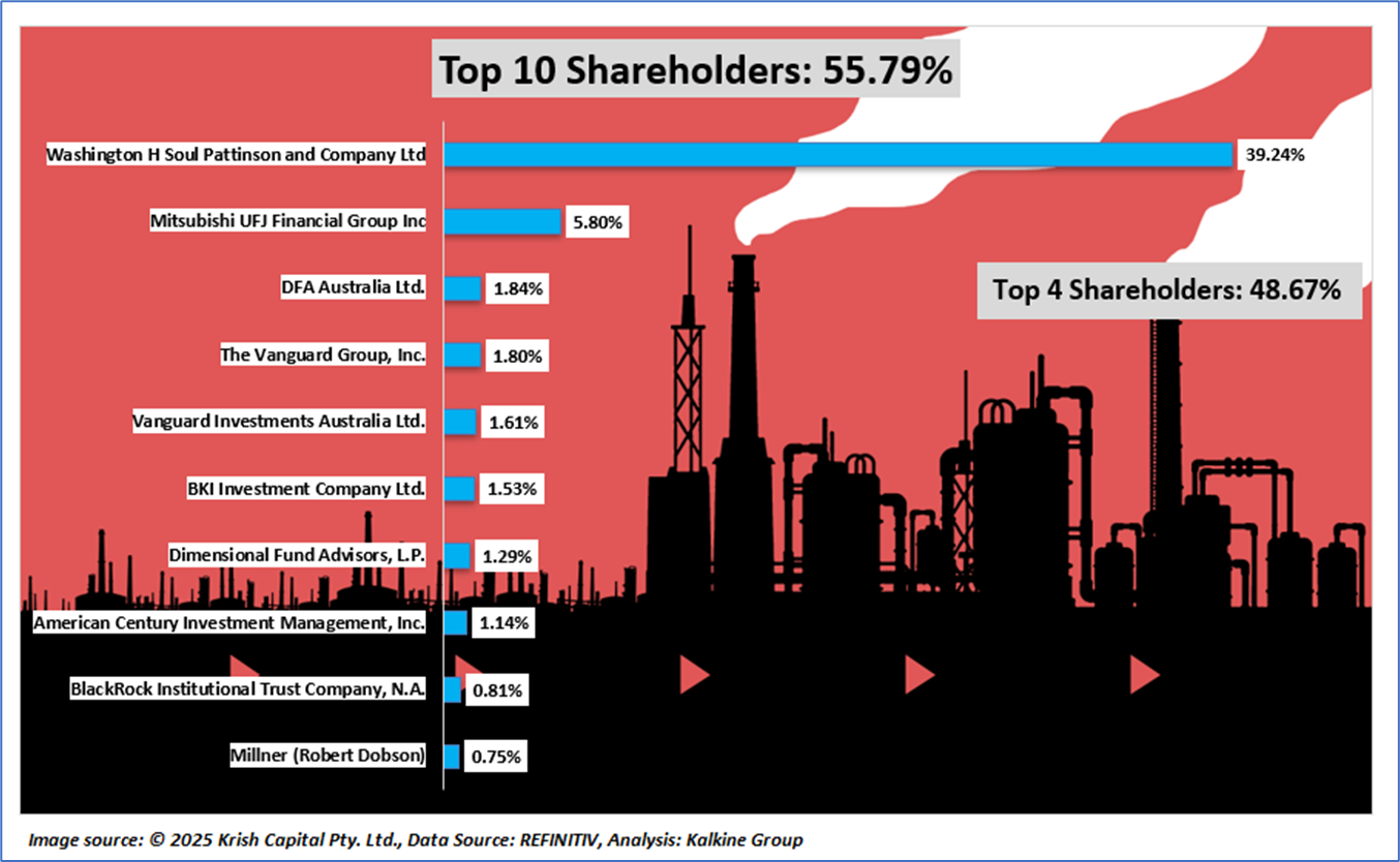 The top 10 shareholders together form 55.79% of the total shareholding. Washington H Soul Pattinson and Company Ltd and Mitsubishi UFJ Financial Group Inc hold maximum stakes in the company at 39.24% and 5.80%, respectively.