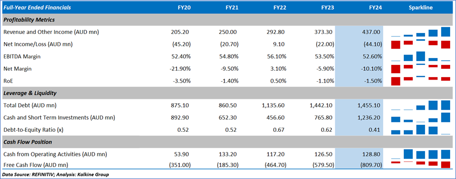 1.4: Key Metrics: NXT registered AUD 440.2mn in cash receipts at the end of June 2024 vs AUD 383.9mn at the end of June 2023. Below is captured the metrics showing the trend of gross profit and operating margin since FY20: